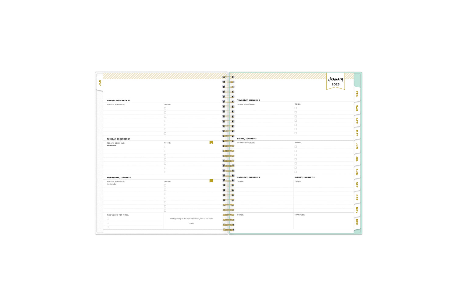 Secret Garden Mint 2025 Weekly Monthly 8.5×11 Day Designer for